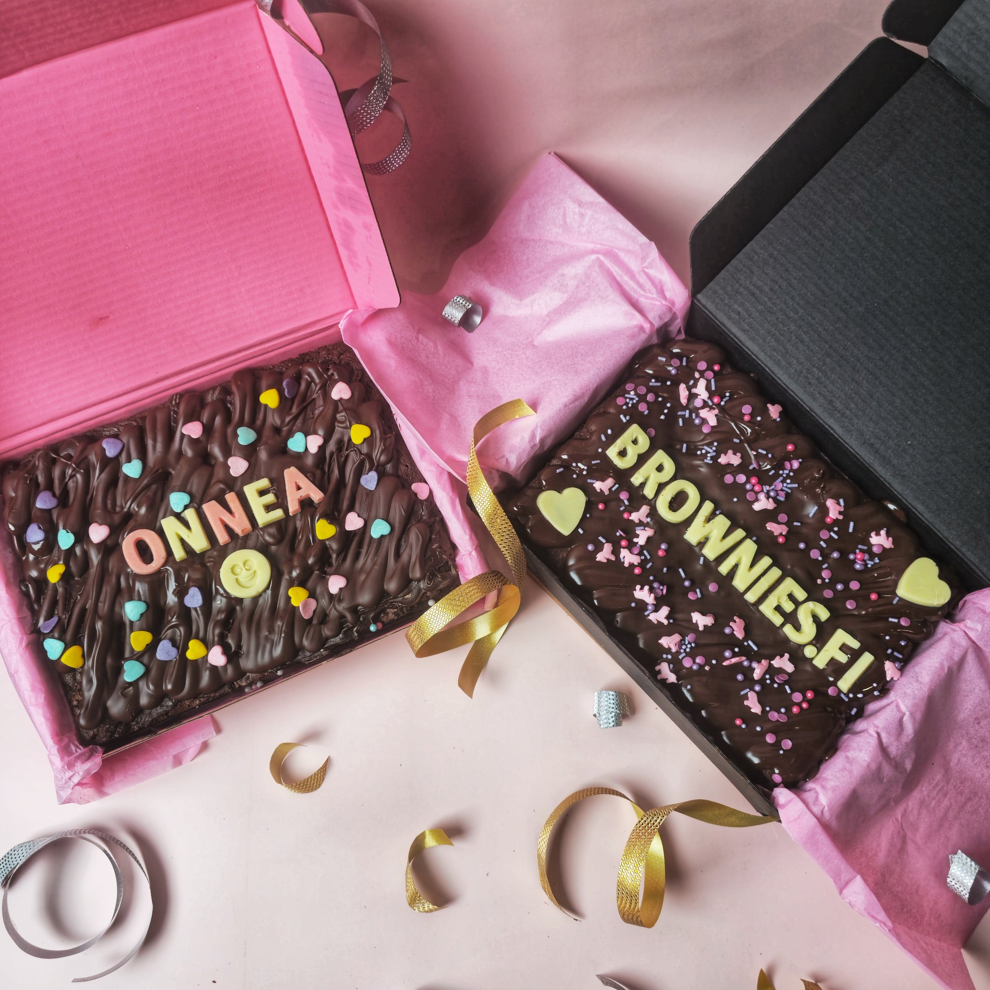 A personalized brownie gift made with rich Belgian and French chocolates. Add a custom chocolate letter message for birthdays, anniversaries, or special occasions.